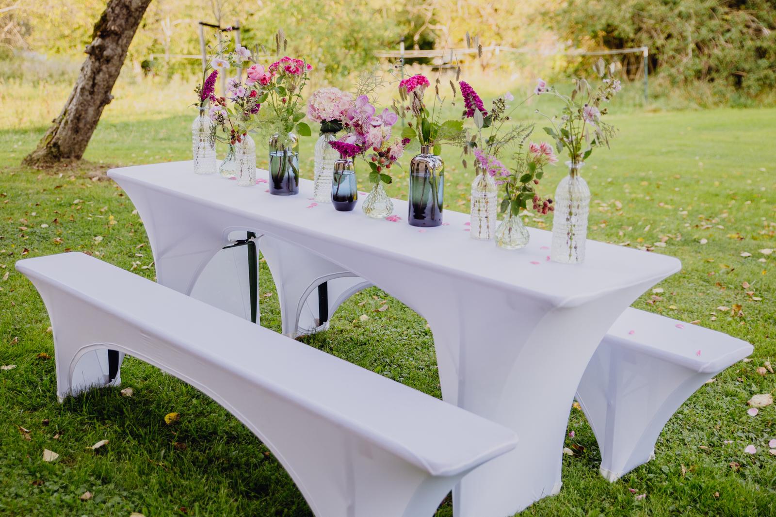 Tische rund & eckig, Stühle, Tischdecken rund & eckig, Stuhlhussen, Stehtische & Hussen, Aircone Leuchtkegel, Leinwand und Beamer zur